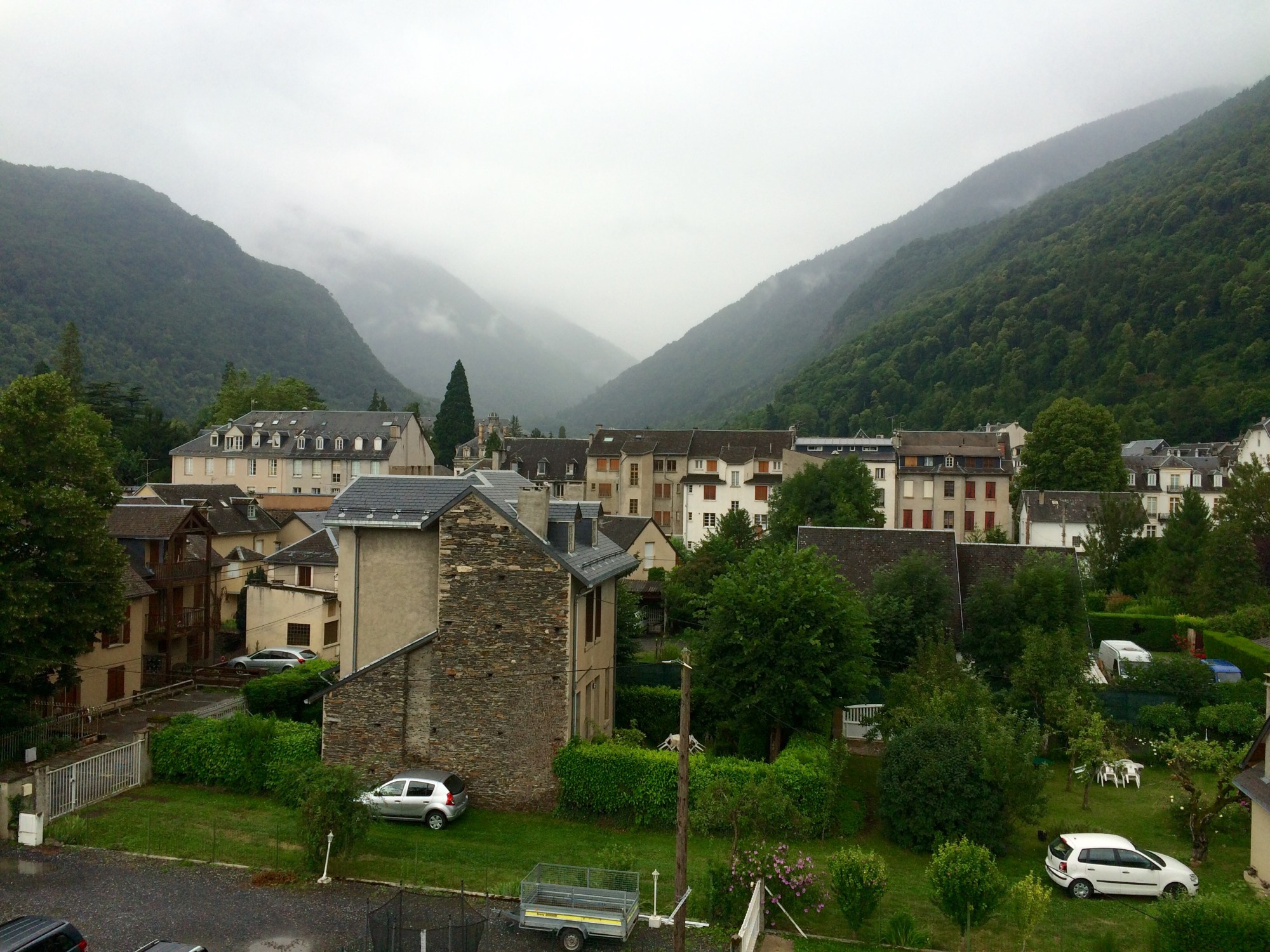 Je finis la journée avec le Peyresourde où je reprends confiance en mes jambes! Arrivé à Bagnères-de-Luchon, la ville reine des Pyrénées, je laisse mon vélo chez un super-mécano. Il a un peu souffert de la pluie et des bouses de vaches qui lui ont laissé des fibres un peu partout. Mon vélo ressort du mécano tout propre et le petit problème de câble du dérailleur avant est également réglé.