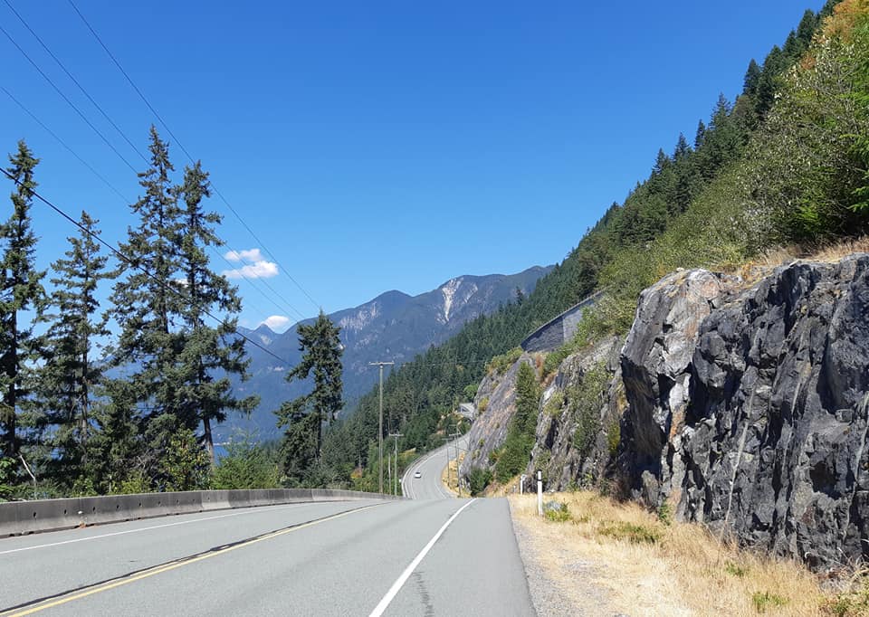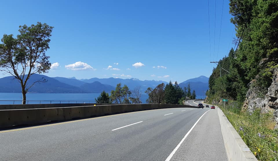 Après avoir roulé la Sunshine Coast, pris un sixième traversier, nous voilà sur la Sea To Sky Highway. Ce fut la plus grosse journée en terme de dénivelé. J’avoue que j’ai poussé mon vélo sur le dernier cinquante mètres dans ce qui m’a semblé être plus un mur qu’une côte.