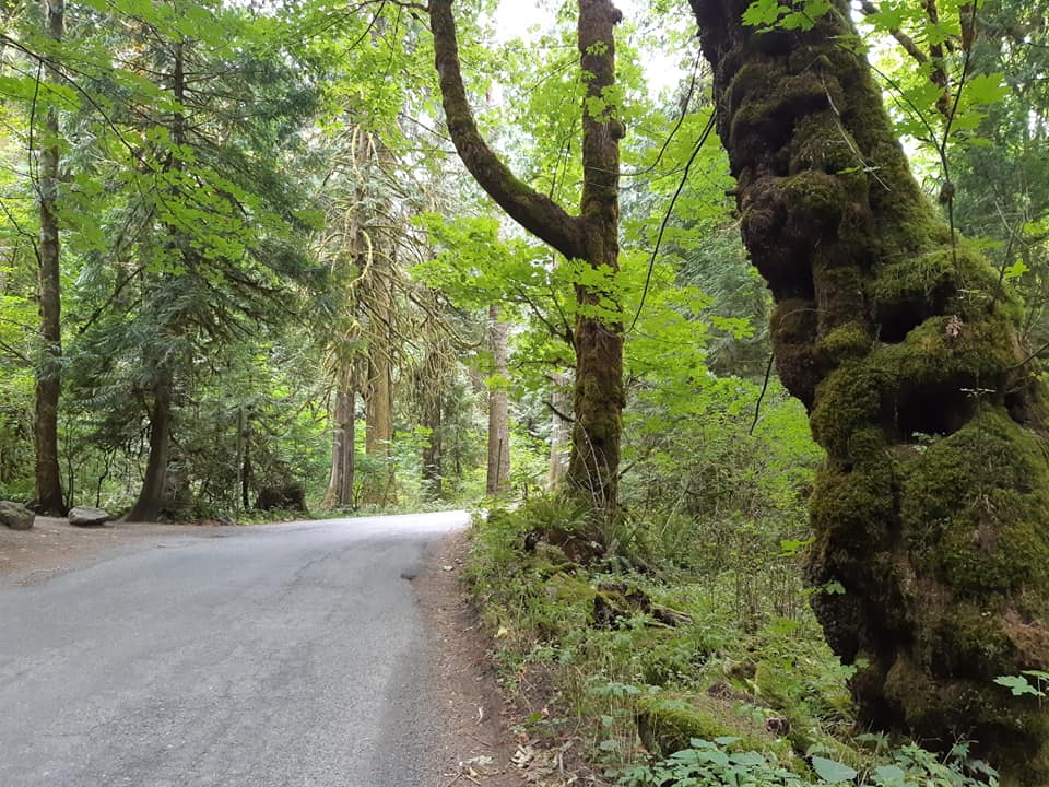 La route à travers le parc Gowlland Tod est majestueuse et sinueuse, avec de bons pics! Que dire de la Baie Patricia et des immenses arbres de la région?! Wow! Ces gros centenaires sont incroyables, tellement grandioses! Par contre, les huit derniers kilomètres sur une Transcanadienne à quatre voies n’offrent pas une expérience de quiétude, mais les parois rocheuses et les points de vue sur la baie rendent la traversée moins pénible, sans nous faire oublier le vacarme du traffic.