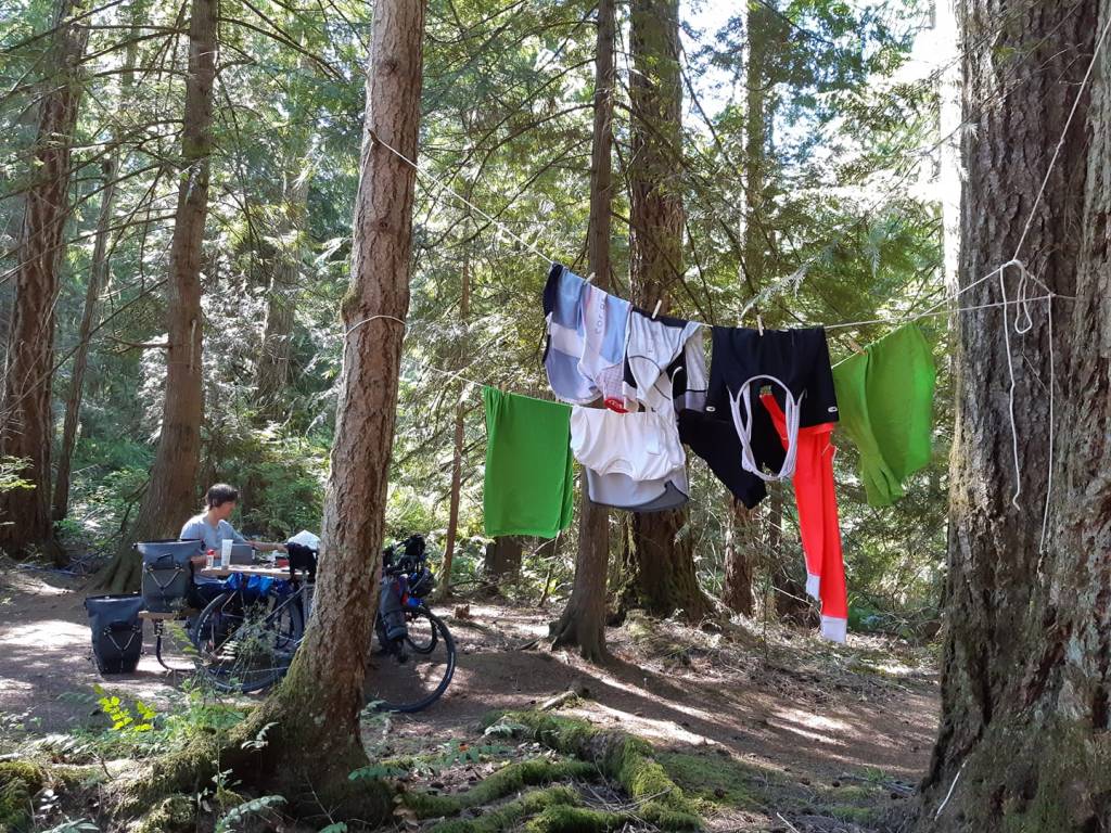 Suite à deux nuits de toilettes sèches, de bain dans le lac ou à la mitaine, j’ai hâte à ce soir pour prendre une douche chaude. Après cinq jours à rouler, demain c’est jour de repos pour moi. Samuel planifie faire le tour du lac Cowichan à vélo. Damn. Ça passe vite!