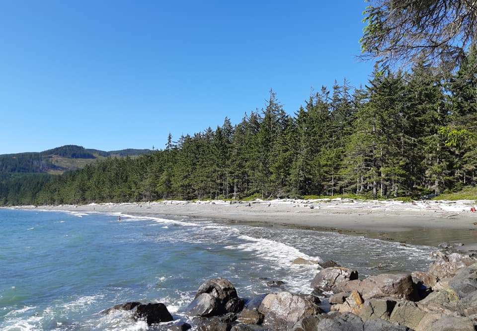 Pour les vingt derniers kilomètres jusqu’au parc national de la French Beach, nous avons du rouler sur la 14. Woah! On a eu droit à deux très fortes montées sous le soleil cuisant, et sans accotement! J’ai tiré fort dans la dernière côte, je respirais à la pleine capacité de mes poumons! Comme il y avait des travaux routiers, il a fallu partager la route avec des convois de voitures. Je ne vous cacherai pas que ça me stress de pédaler en sachant qu’il y a trois ou quatre voitures en file indienne derrière moi, même si les automobilistes sont très hospitaliers dans le coin jusqu’à maintenant.