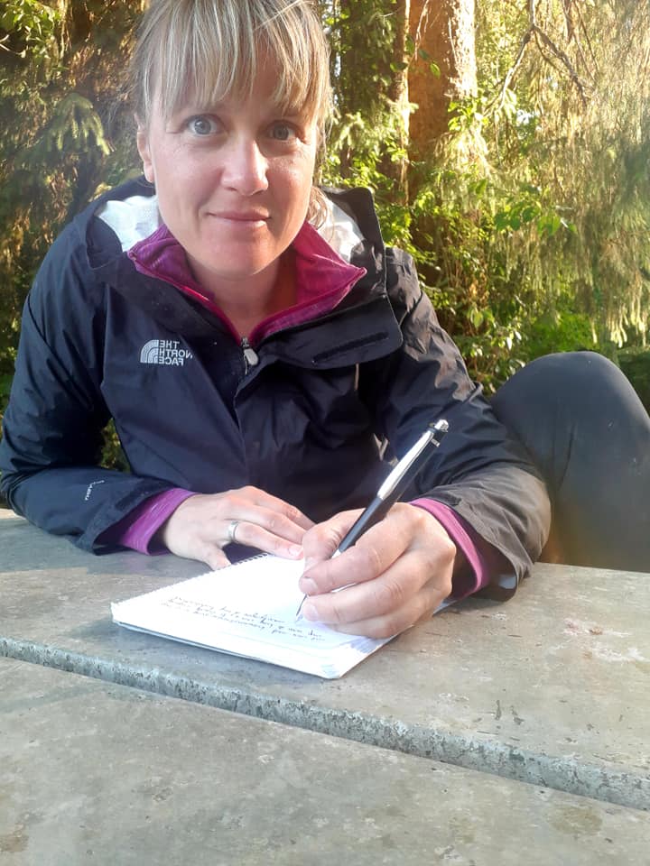 Alors que Samuel est parti faire sa grande boucle du Cowichan, j’en profite pour me reposer, laisser guérir mes irritations (aux fesses et aux parties « intimes »), faire du lavage à la main dans le lavabo des toilettes publiques, m’étirer comme un chat au soleil sur le bord de la plage tout en faisant quelques mouvements de yoga, et écrire dans mon journal sur l’une des table de pique-nique face au lac. Il est 9h am, les familles ne sont pas encore débarquées sur la plage. Comme dirait mon amie Annick: NAMASTE colisss!