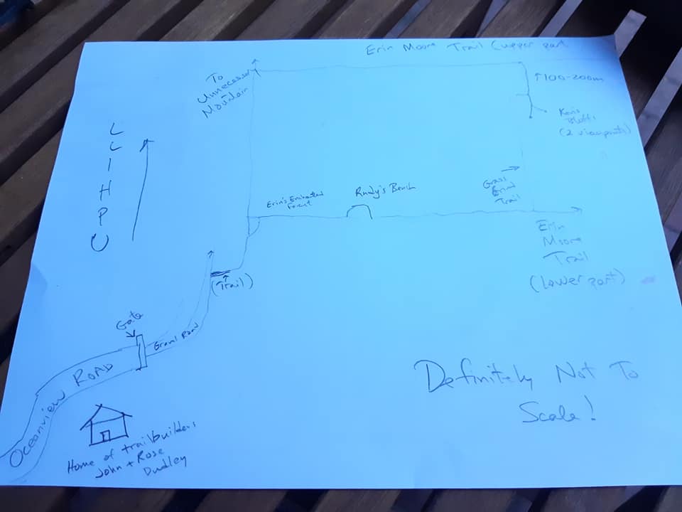 L’hospitalité des gens de la Colombie-Britannique que nous rencontrons me touche beaucoup. Nous sommes présentement accueillis dans la cour de John et sa famille. John est un hôte incroyable. Généreux et sympathique, il m’a même dessiné une carte à la main pour que je puisse me rendre au sentier de randonnée le plus près de chez-lui, pendant que Sam est parti dans une épopée de vélo sur la Sea To Sky en direction de Whistler libre de bagages.