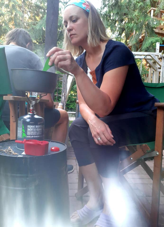 Notre camping est situé à quelques coups de pédale du quai, collé sur la route. On a pratiquement aucune intimité et les lieux sont bruyants. J’ai fraternisé avec nos voisines d’en face, jusqu’à ce qu’elles s’enfoncent dans un délire conspirationniste sur la pandémie, les « chemtrails », et sur les camps d’entrainement chinois au Canada soutenus par Trudeau.