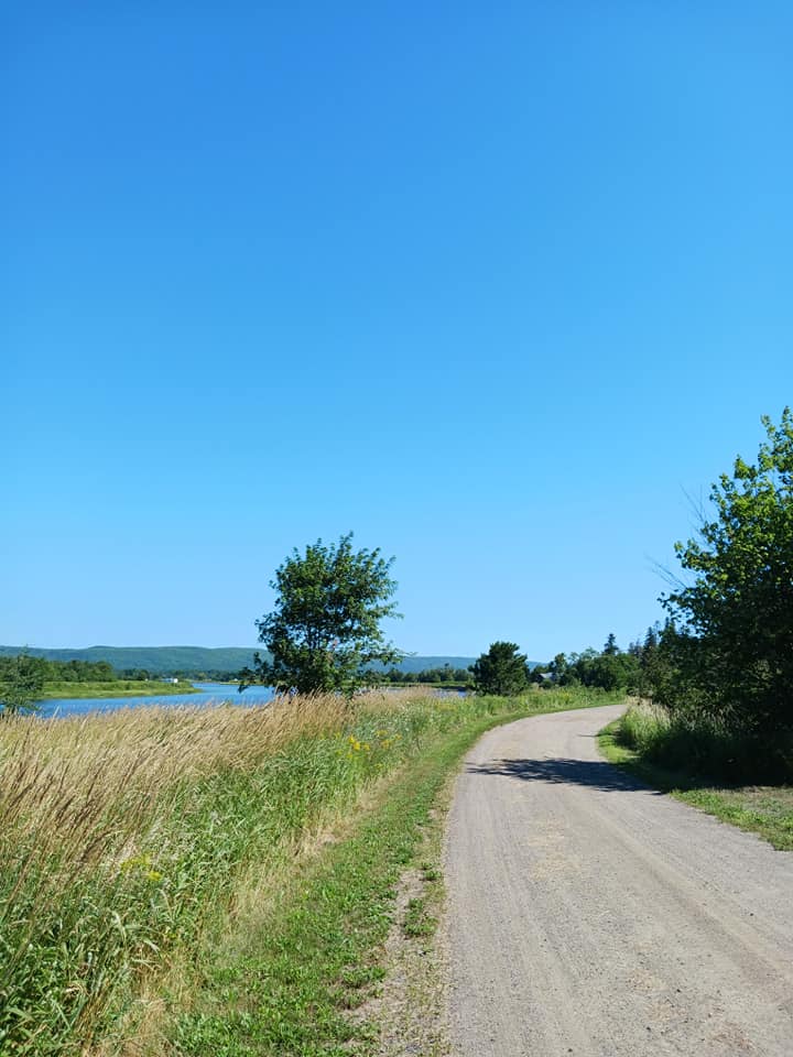 Pour se rendre à Kingston (Nouvelle-Écosse), On a parcouru presque tout le chemin sur une piste cyclable qui nous a fait traverser des champs agricoles, du boisé, et passer derrière quelques usines.