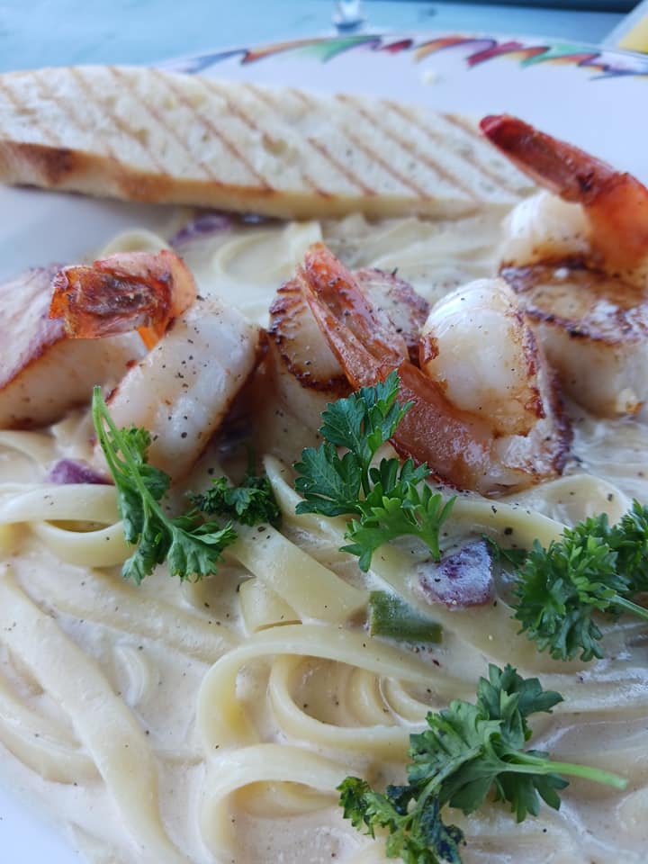 Après s’être régalés de fruits de mer et de cocktails, Sam et moi sommes allés marcher sur le quai et le bord de la grève où on a pu croiser un phoque gris et des pêcheurs de maquereaux.