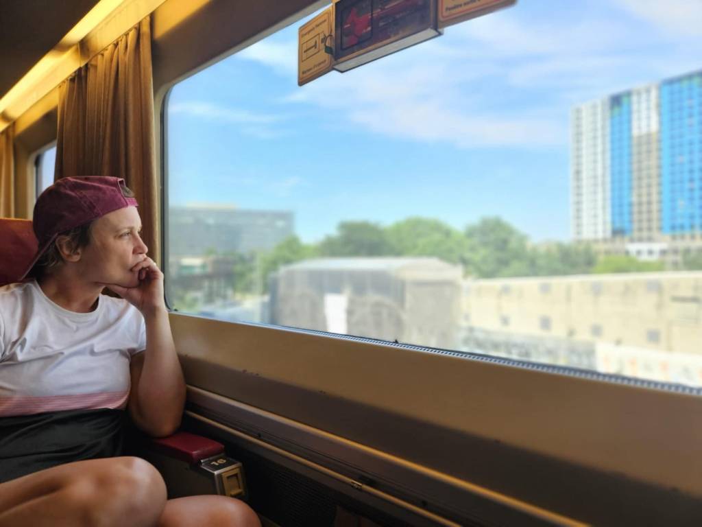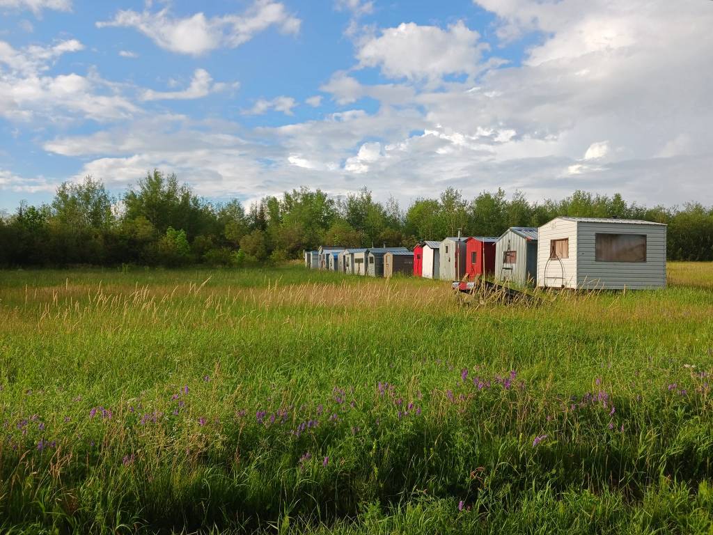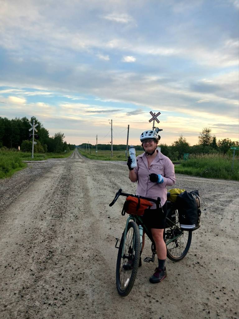 Toute qu’une première journée de cyclocamping en Abitibi! Après une courte nuit en wagon, plus ou moins confortable et agitée par des messieurs saouls et bavards, à 4h40am nous sommes arrivées à Senneterre. Ce trajet ferroviaire, contrairement à celui entre Mtl-Campbellton ou Mtl-Moncton, n’offre que la classe économique. Il n’y a donc que des sièges qui se penchent timidement vers l’arrière. En sortant du train, après y avoir passé treize heures, alors que je me disais à moi-même du haut de mes 41 ans: « I’m too old for this shit » – il arrive que je me parle en anglais avec un gros accent québécois – j’aperçois une dame âgée de 87 ans s’étirer sur le banc de la gare. Elle affichait un grand sourire. Parties de Québec, elle et sa fille avaient fait plus de 18 heures de route en train et elles avaient beaucoup aimé l’expérience. J’ai ravalé mes lamentations!