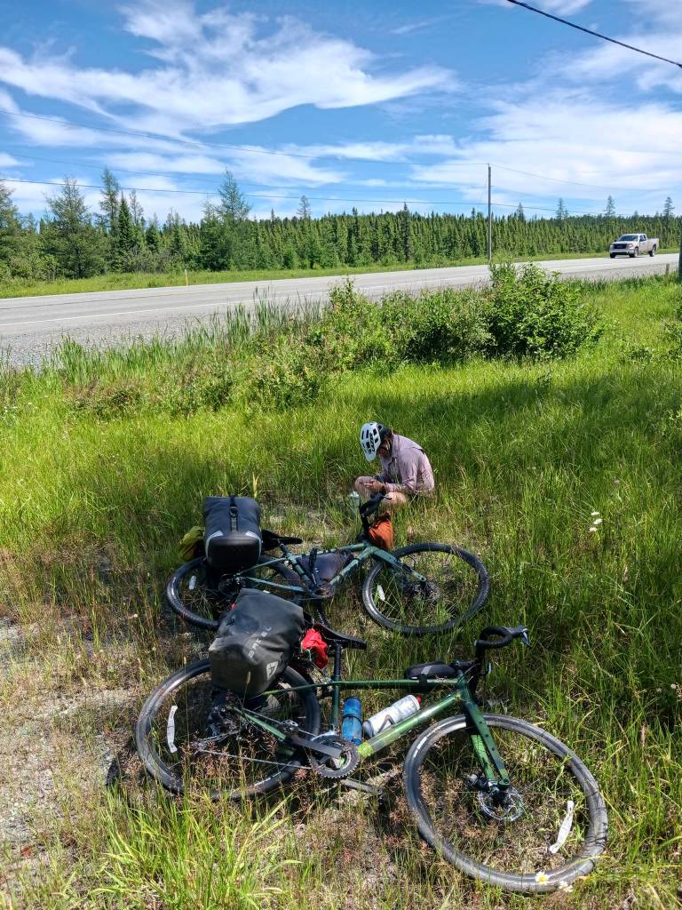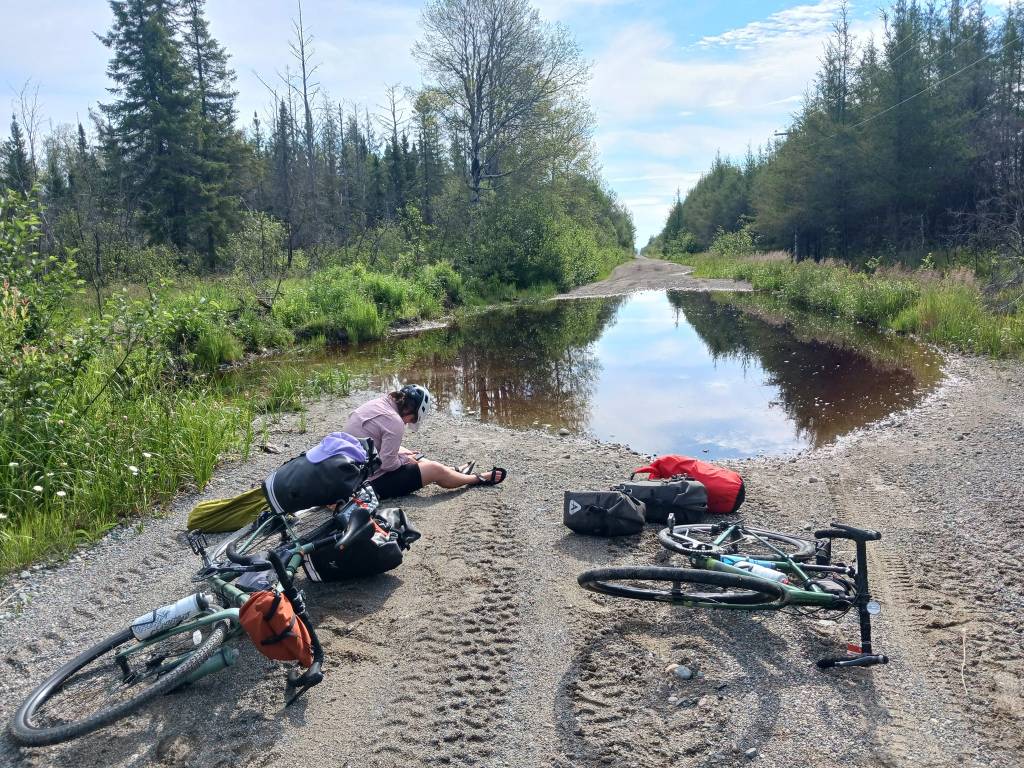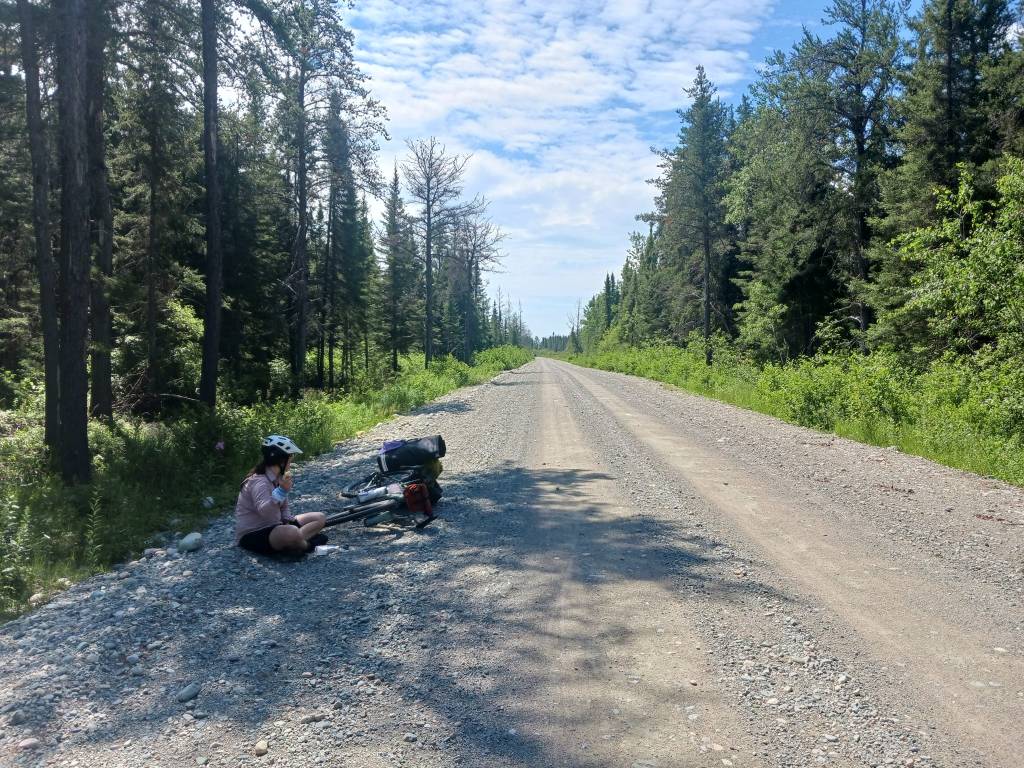 À 5h18am nous étions prêtes à partir pour une épopée vers le Camping du Lac Beauchesne à Amos. Les quarante premiers kilomètres jusqu’à Barraute ont été un vrai charme. Il n’y a pas grand monde sur la route 386 le samedi entre 5h et 7h am! Nous sommes arrivées à l’ouverture du dépanneur où nous avons pris une longue pause déjeuner.