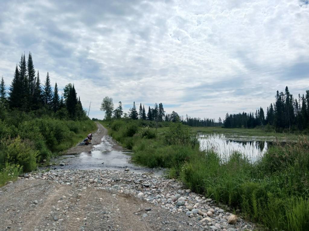 Nous avons clanché rapidement les 78km entre Malartic et le camping Le huard, avec un vent de dos pendant une bonne partie de la journée sur la 117. Il s’est ensuite mis à nous fouetter de côté lorsque nous avons viré sur la 113 vers Senneterre. Encore une fois, la météo a été notre meilleure alliée: le mur de pluie est tombé sur notre camping juste avant notre arrivée!