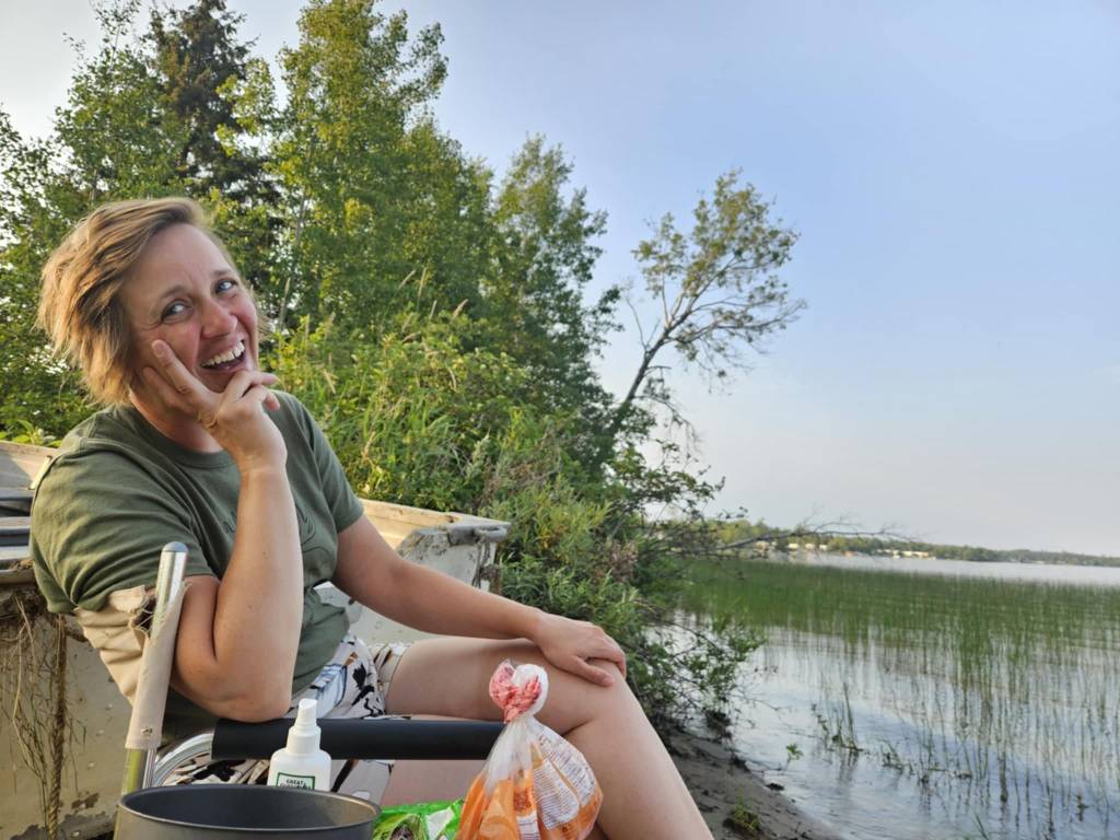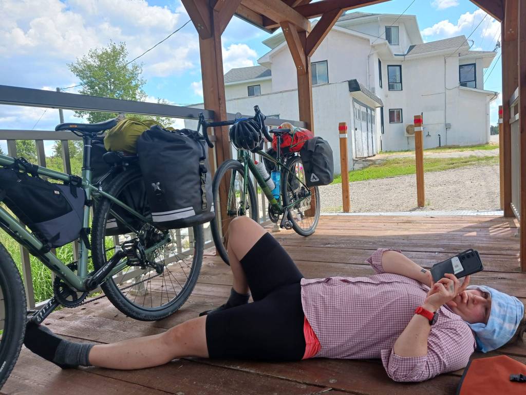 Je me suis couchée avec le sourire aux lèvres, la bedaine pleine et le coeur ému de reconnaissance envers l’Abitibi. Ce qui me touche le plus, c’est la générosité, la curiosité et l’ouverture des gens que l’on y croise. Je comprends qu’il est assez inhabituel de rencontrer des cyclo-campeurs dans ce coin de pays, et les abitibien-nes semblent content-es qu’on voyage ainsi par chez-eux.
