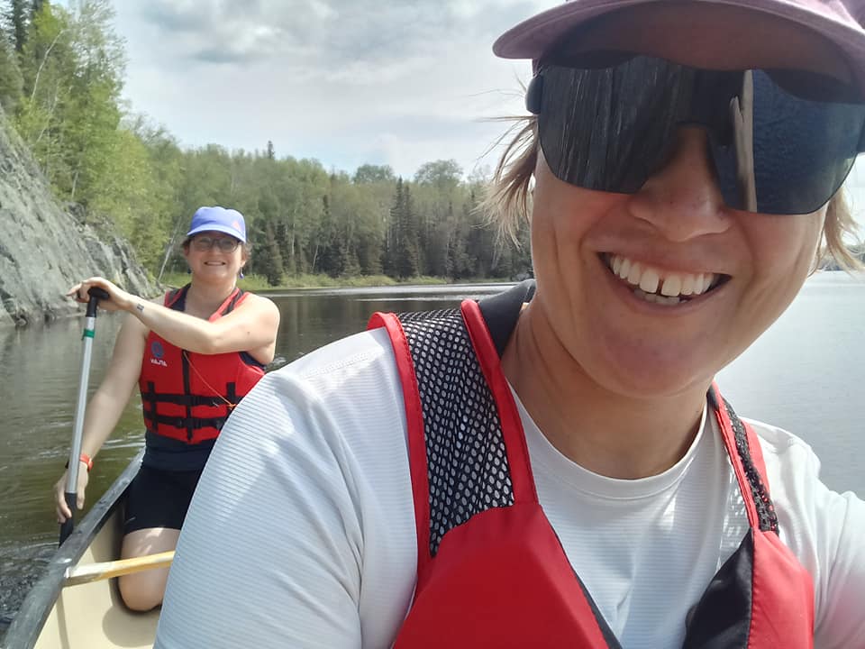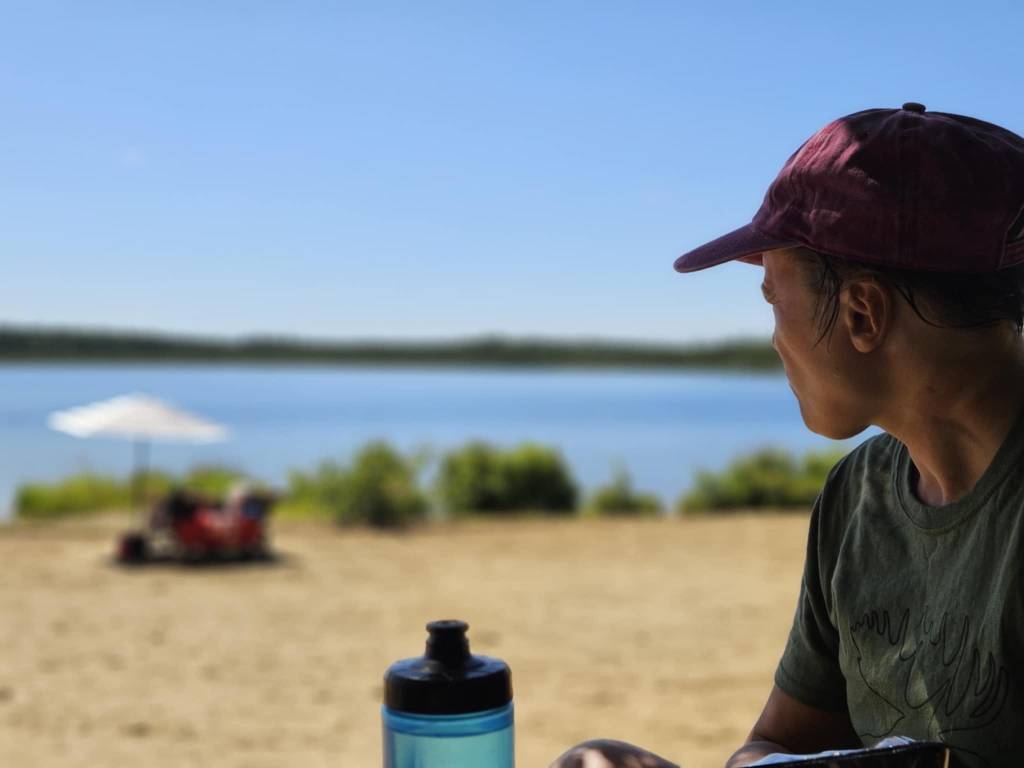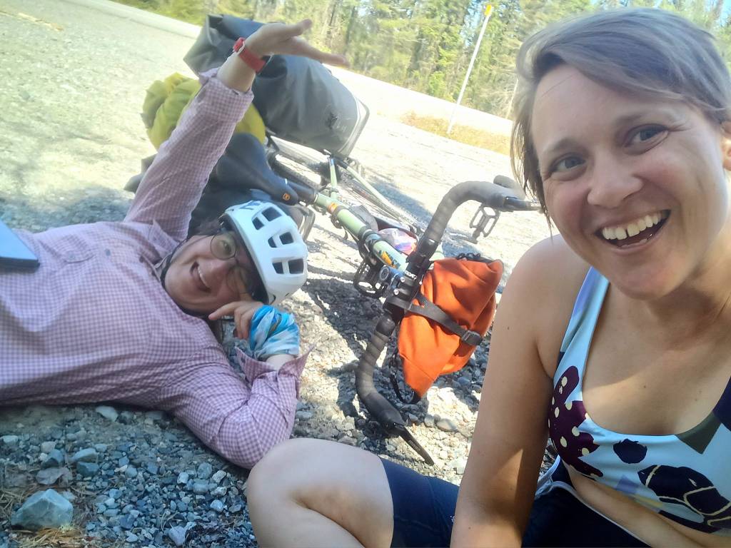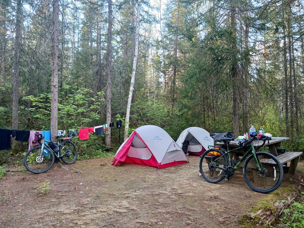 Après une première journée à la fois excitante et éprouvante, nous étions reconnaissantes de l’accueil extraordinaire qui nous a été offert au camping municipal du Lac Beauchesne. Nous avons eu droit à une virée en 4 roues avec le responsable du site pour choisir notre emplacement! La plage est à quelques coups de pédale du camping. Une petite baignade nous a ressuscitées avant de retourner à notre campement préparer notre premier plat lyophilisé du voyage.