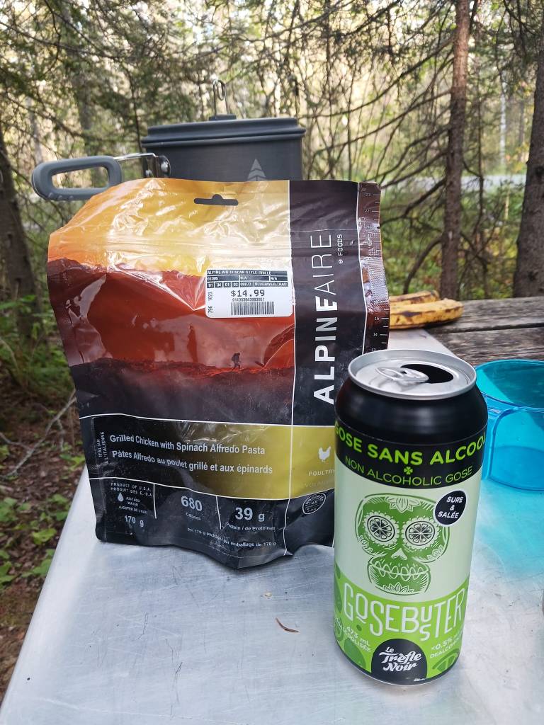 Pour les toilettes, on nous a proposé de remplir des seaux à même le lac pour pouvoir flusher. Quant à la douche, une baignade a fait la job! Le lac a donc été notre salle de bain et de lavage. Il n’y avait pas grand chose au petit dépanneur du parc, mais les bières locales sans alcool Gosebuster de la microbrasserie Le Trèfle noir qui nous ont été offertes comme prix de consolation ont été grandement appréciées!