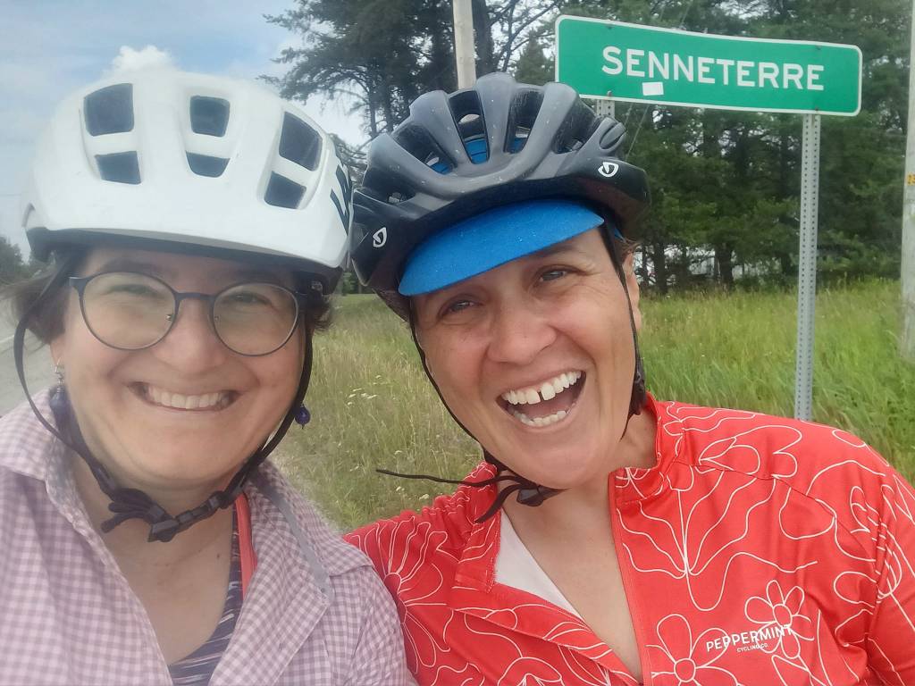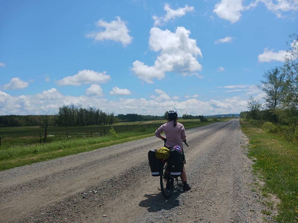 Malgré un vent de face sur une bonne partie de la route, le moral était bon autant pour Céline que pour moi! Nos deux tronçons préférés ont été entre Poularies et Macanic où on entre dans un paysage plus agricole – ça fait changement des murs de sapins et de bouleaux- puis celui en gravier vers Colombourg. Nous nous sommes réconciliées avec les chemins de gravelle.
