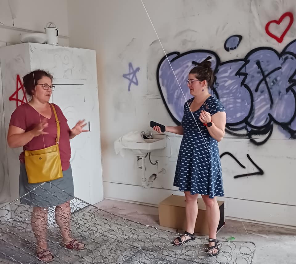Le plus beau moment de notre journée – après le merveilleux déjeuner au mille confitures du Presbytère – est sans aucun doute l’accueil à Rouyn-Noranda de notre hôte Ariane rencontrée via la page Facebook « Viens piquer ta tente chez-nous! ». Cette artiste abitibienne chaleureuse, talentueuse et engagée, nous a plongé au coeur de la vie culturelle et politique de sa ville. Ariane nous a même offert des chambres pour la nuit, mais comme je suis allergique aux chats, j’ai dû décliner. Céline, cette grande amoureuse des félins a pu en profiter. J’ai tout de même très bien dormi en tente dans sa charmante cour, sur un tapis de gazon moelleux.