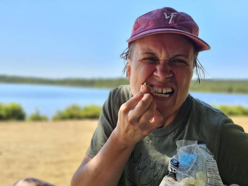 En soirée, alors que nous mangions notre souper lyophilisé sous la musique reggaeton et le cri des enfants excités par les glissades de mousse, nous avons croisé Josée Lapierre, une sympathique enseignante de Val d’Or qui suit ma page Facebook depuis quelques jours. C’est vraiment chouette quand les gens qui nous reconnaissent viennent nous parler de notre périple et de leur région!