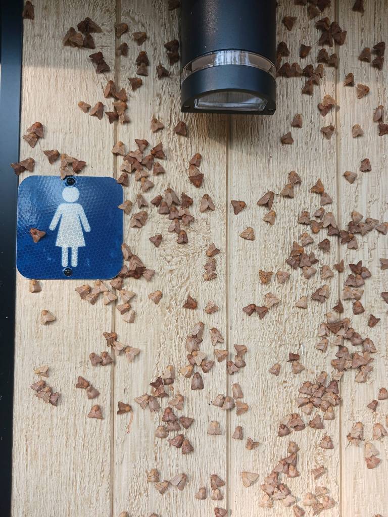 Nous avons été bénies par la vie! La pluie d’hier soir est tombée à notre heure de dodo, et elle a cessé un peu avant notre déjeuner! J’avais également prévu le coup: pour protéger nos vélos du déluge annoncé, nous les avons mis à l’abri dans la grande salle de bains du parc. Nous avons donc pu déjeuner au sec et repartir sur nos bicyclettes intactes.