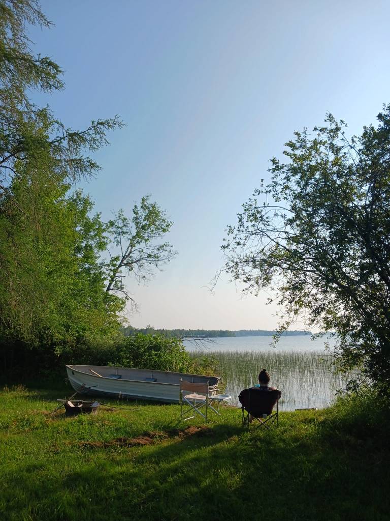 Une fois installées, rafraichies et rassasiées, nous avons pu apprécier le magnifique site d’Aiguebelle. On s’y sent en pleine nature. Nous étions presque seules. Ce n’est pas silencieux pour autant, on peut y entendre le magnifique chant des huards, celui des grenouilles et de plein d’autres animaux que je ne suis pas en mesure d’identifier.