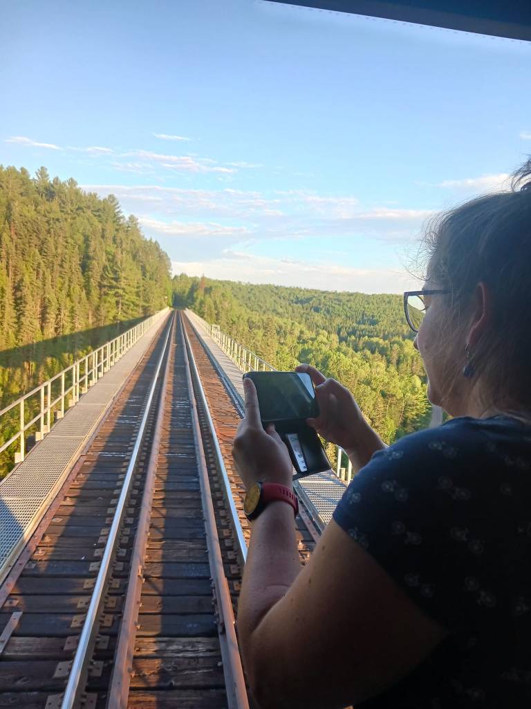 Notre dernière journée a été de tout repos! Après avoir déjeuné à la pourvoirie, Céline et moi sommes revenues dans nos tentes pour faire une grosse sieste de 10h à midi. Nous sommes ensuite retournées dîner au camping Obaska, avant de reprendre la route jusqu’au sentier du rapide Chute à Grandmaison. L’endroit mérite un arrêt pour une petite marche le long de la rivière Bell. À partir de là, il ne nous restait plus que trois kilomètres avant le retour à la gare de Senneterre.